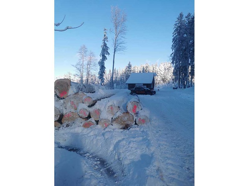 Auch das Bauprojekt in Oberterzen begann mit einem gemeinsamen Streifzug durch den Wald. «Umarmt haben wir die Bäume allerdings nicht, sondern einfach nur berührt», erklärt dazu der Bauherr. «Der Bezug zur Ausgangsmaterie war uns wichtig – genauso wichtig, wie jede Bauphase begleiten zu können.» Uns so war das Bauherrenpaar im Spätherbst/Winter 2022 selbstverständlich auch beim «Ringle» dabei, als die Bäume unten am Stamm angeritzt wurden, damit vor dem Fällen kein Saft mehr fliessen kann. Einige Wochen später sind die Bäume dann zur entsprechenden Mondphase gefällt worden.