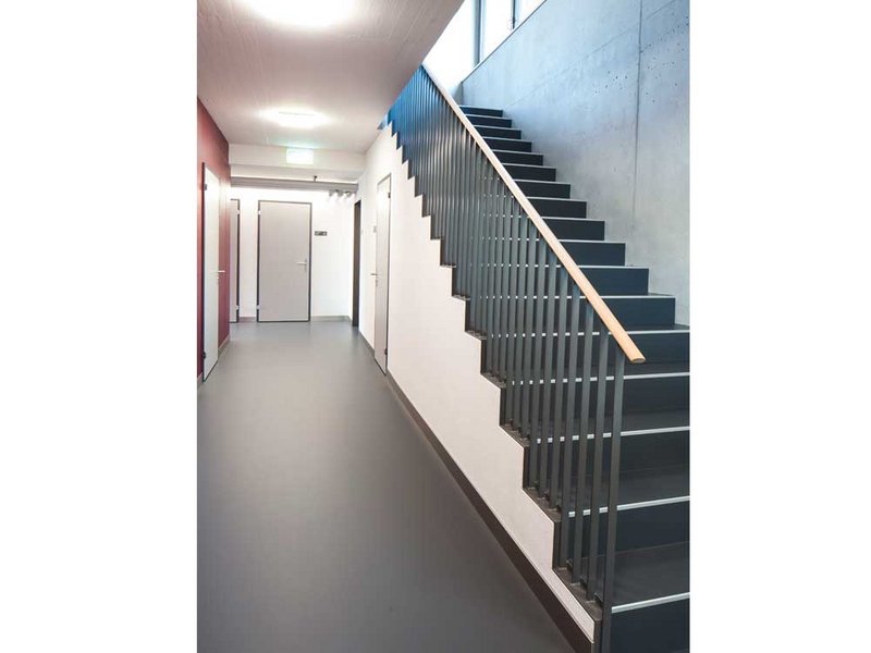 Die Landreserven für die neue Turnhalle in Islisberg waren knapp. Der Bau fügt sich jedoch dank guter Ausnützung optimal in die topografischen Verhältnisse der bestehenden Anlage samt Umgebung ein. Mit einer konsequent optimierten Architektur ist es der Langenegger Architekten AG gelungen, die geforderten Nutzungen kompakt und gleichzeitig funktional überzeugend unterzubringen. Das Bauvolumen ist einfach gegliedert. Mit den beiden Zugängen auf unterschiedlichen Niveaus kann auf die Bedürfnisse von Schule sowie Vereinen optimal reagiert werden. Eine Zuschauergalerie vermittelt einen überraschend grosszügigen Gesamteindruck. Belichtung und natürliche Belüftung sind – dank Verglasung beider Längsfassaden – optimal gelöst. Die filigrane Fassade verdankt der Bau der Pfosten-Riegelkonstruktion, die auf einer Unterkonstruktion aus BauBuche ruht.