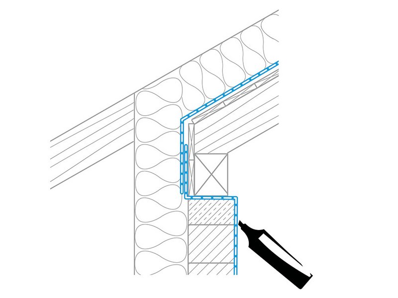 - Lage und Verlauf der Luftdichtung in der Fläche, bei den An- und Abschlüssen sowie bei Durchdringungen müssen sorgfältig geplant und umgesetzt werden.