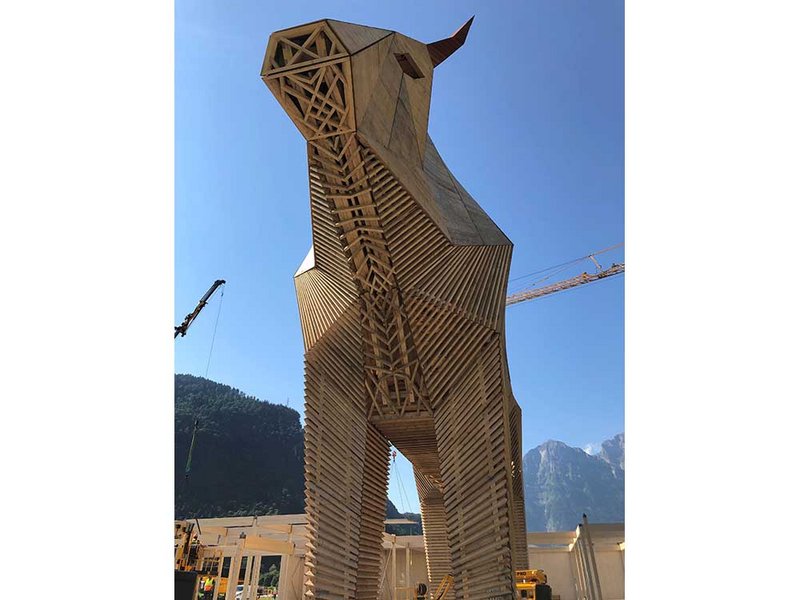 HolzvisionMAX, eine Initiative des Vereins Säntis Innovations-Cluster Holz, hat entschieden: Der über 21 Meter hohe Muni Max wird nach seinem Auftritt am ESAF 2025 im Glarnerland künftig im Kanton Uri stehen. Die Initiative HolzvisionMAX wurde 2021 lanciert, um die gesamte Wertschöpfungskette der Schweizer Wald- und Holzwirtschaft – vom Wald über Sägereien bis hin zu Holzbau, Schreinereien, Planung, Handel und Logistik – interdisziplinär und regional zu vernetzen und zu stärken. Der 21,3 Meter hohe Holzstier (9,75 breit, 36,25 Meter lang) wiegt 182 Tonnen und besteht zu 100 Prozent aus Schweizer Holz, grösstenteils Fichte aus regionalen Wäldern. Über 220 Unternehmen und Institutionen waren am Projekt beteiligt und mehr als 500 Lernende sammelten dabei praxisnahe Erfahrungen. Muni Max ist das erste Bauwerk, das gemeinsam von allen Akteuren entlang der Holzkette realisiert wurde – ein Meilenstein für eine zukunftsfähige und nachhaltige Wald- und Holzwirtschaft. Regionale Waldpflege und Holznutzung sichern dabei nicht nur die natürlichen Kreisläufe unserer Umwelt, sondern auch vielfältige Arbeits- und Ausbildungsplätze, insbesondere in ländlichen Regionen. Von Beginn an legte das Projektteam Wert darauf, dass Muni Max auch nach dem ESAF eine Zukunft hat. Im Rahmen eines offenen Bewerbungsverfahrens konnten Interessenten bis zum 27. August 2025 ihre Unterlagen einreichen. Eingefordert wurden ein verbindliches Kaufangebot, ein schlüssiges Nutzungskonzept, ein Finanzierungsnachweis sowie Angaben zu Standort, Terminplanung und Betreibergesellschaft. Insgesamt gingen sechs Angebote ein – aus den Kantonen Glarus, St. Gallen, Appenzell Ausserrhoden, Graubünden, Uri und Schwyz. Vier davon überzeugten mit detaillierten Konzepten und breiter Abstützung in den Regionen. Nach sorgfältiger Prüfung aller Eingaben fiel die Wahl auf den Kanton Uri. Ausschlaggebend waren ein überzeugendes und breit abgestütztes Nutzungskonzept, hohe Verbindlichkeit, rasche Umsetzbarkeit sowie eine klare Zielverfolgung. Das Projektteam von HolzvisionMAX steht geschlossen hinter diesem Entscheid. Mit Uri als neuem Standort bleibt Muni Max weit über das ESAF hinaus bestehen – als Wahrzeichen für die Innovationskraft, die Zusammenarbeit und die Stärke der Schweizer Wald- und Holzwirtschaft.