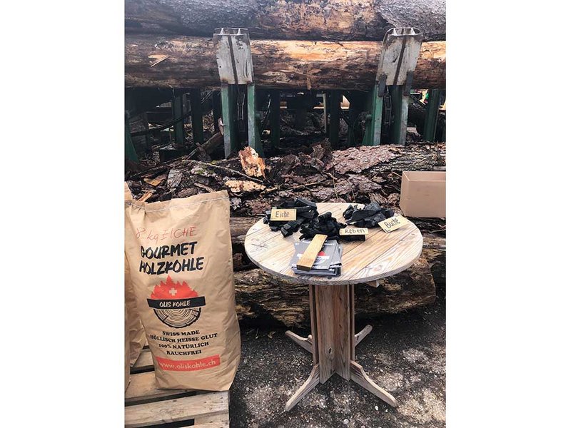 Als verbindendes Element zwischen allen teilnehmenden Unternehmen am Standort Stammheim hatten sich die Veranstalter etwas ganz Besonderes ausgedacht: den Bau von Kügelibahnen. Und so rollten an den verschiedensten Standorten kleine Holzkugeln durch originell konzipierte Parcours – unter anderem auf dem Gelände der Konrad Keller AG, die auch am Sonntag zu einem abwechslungsreichen Rundgang auf dem Betriebsgelände eingeladen hatte. Dort präsentierten sich auch vier andere Unternehmen: die Walter Schwendimann AG, die Wirth Haustechnik AG, Pro Dampfer und Olis Kohle. Per Shuttlebus gelangten interessierte Besucherinnen und Besucher zu weiteren Stationen, die Themen wie Architekturplanung, Zimmermannshandwerk, Holzschlag und Waldpädagogik aufgriffen. Beim Branchenanlass der Schweizer Holzkette ging es zudem ums «Kohle machen»: Der gelernte Forstwart und BFH-Absolvent Oliver Reinhard demonstrierte, wie modernes Köhlern geht, und erklärte, warum er sich auf die Produktion von Schweizer Holzkohle spezialisiert hat. Denn was viele nicht wissen: Die meiste Kohle zum Grillieren stammt aus dem Ausland, unter anderem aus Paraguay, wo grossflächig Wälder für Viehweideflächen und Sojaanbau gerodet werden. Dabei könne man genauso gut heimisches Holz verwenden. Er selbst nutzt dazu das Abfallholz einer nahegelegenen Sägerei, um lange Transportwege zu vermeiden. Was Olis Kohle zudem besonders macht: Sie entwickelt weder Rauch noch Feinstaub. Der Jungunternehmer bietet ausserdem Kohle aus sortenreinem Holz – neben Buche, Eiche und Esche auch Rebholz, was sich jeweils auf die Brenndauer und den Geschmack auswirkt. Beim Rebholz handelt es sich hierbei um eine besondere Rarität: Aufgrund ihres langsamen Wachstums sind die Reben besonders hart und brennen heisser und länger als anderes Holz.